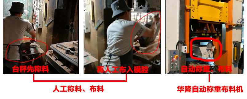 也有部分耐材企業在這個環節選擇了新技術的應用,華隆自動稱重布料機??梢詫崿F自動上料、計量稱重、布料到模腔內??梢詼p少一個人工的使用,同時避免了人為因素對產品質量的影響,保證產品質量的一致性。